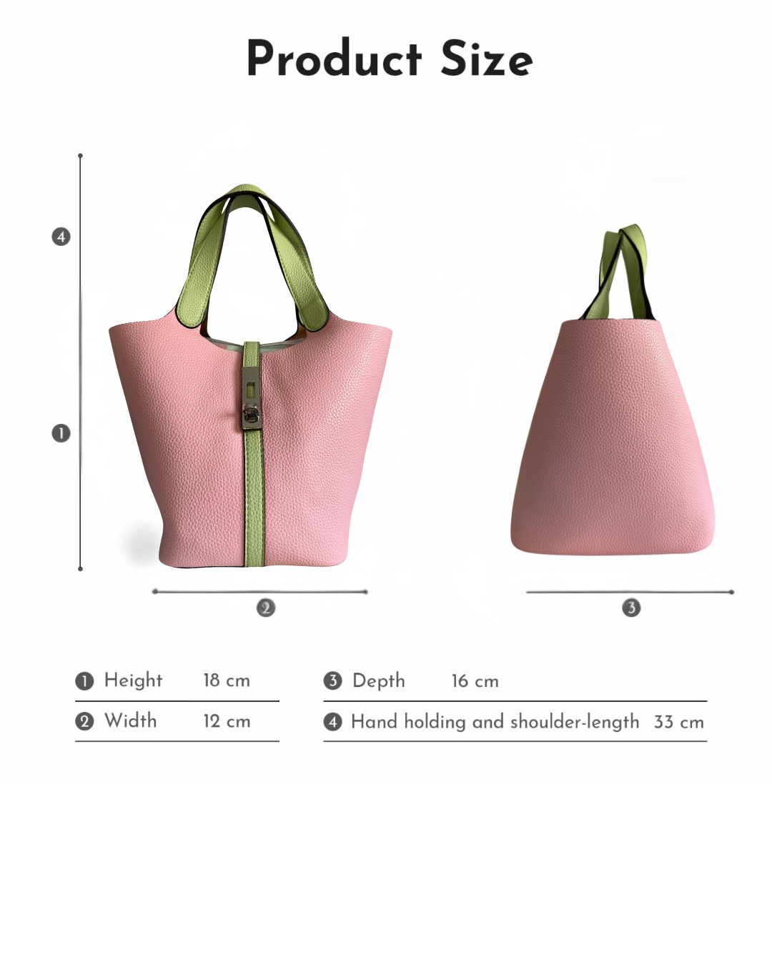 Elaborada en cuero sintético de alta calidad, suave al tacto y con acabado tipo piel texturizada, esta tote combina una estética limpia con estructura firme, ideal para acompañarte en tu rutina diaria, viajes cortos o momentos de autocuidado.